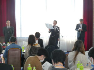 長が校友会の概要について説明を行い本会への理解を深めてもらいました。その後4つの